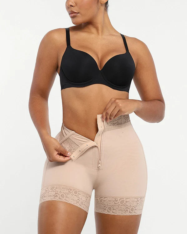 Ce short taille mi-haute offre un maintien doux et une finition en dentelle raffinée.